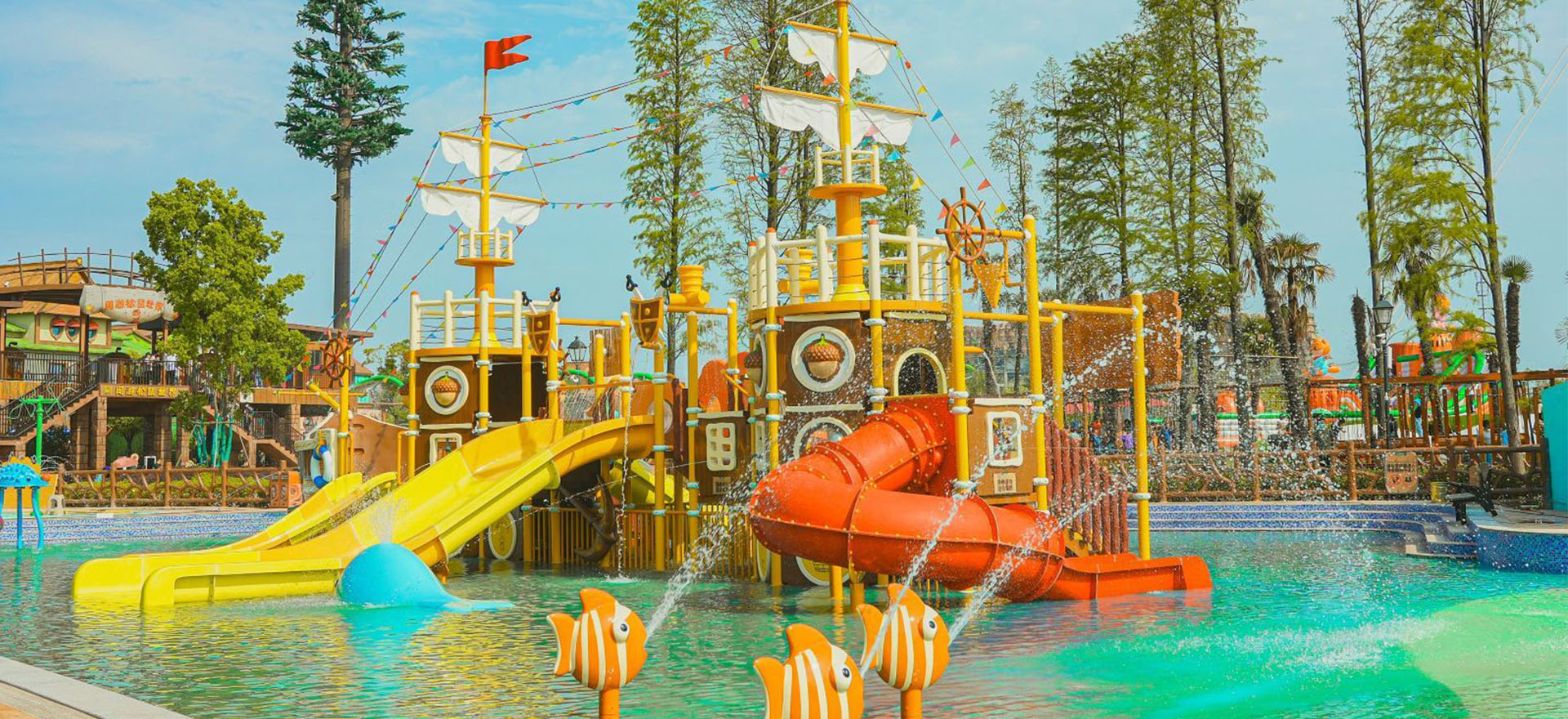項目簡介:安徽蕪湖松鼠小鎮(zhèn)水樂園項目,2022年6月正式開業(yè),場地面積2800平方米。我們運用三只松鼠這個ip形象為客戶設(shè)計了主題故事線,將故事線的松鼠、堅果、動物等元素結(jié)合到水上樂園場景打造中,以此打造沉浸式的游玩體驗,讓三只松鼠的品牌形象更加深入人心。有海盜船水寨、海洋水寨、飛機滑梯、旱噴戲水小品、吶喊噴泉等水上樂園設(shè)備。