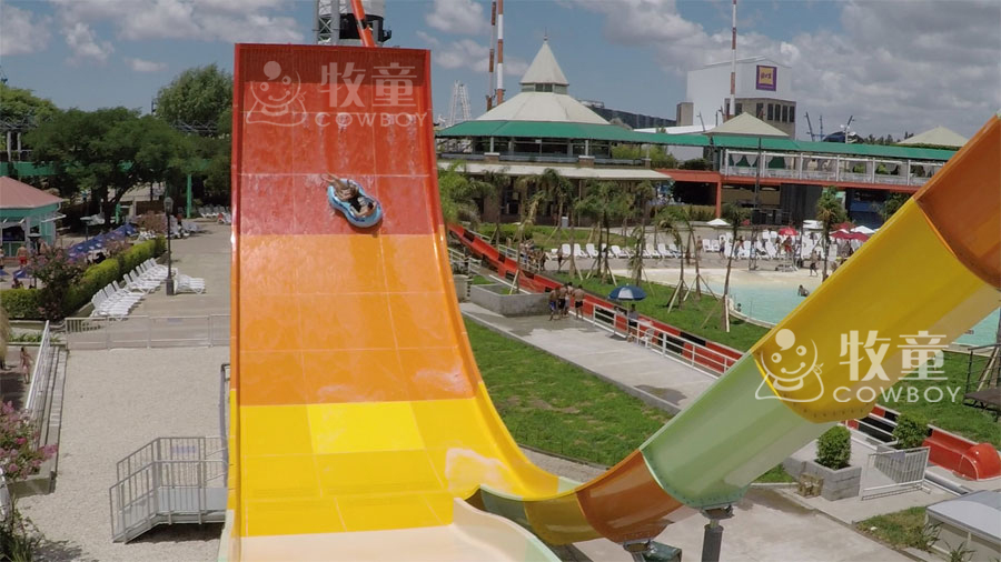 沖天回旋滑梯的形狀就是一個(gè)巨大的滑道加上一個(gè)巨大的U型滑板。2人一組坐到皮筏上,從設(shè)備的最高處快速滑到最底部,然后借著巨大的慣性,繼續(xù)向上滑行到幾乎呈90度上揚(yáng)角度的滑道上,然后再從幾乎垂直的滑道上借著地心引力自由滑落到平緩的地段。徹底地體驗(yàn)沖天回旋的快感帶來的合家歡樂,是水上樂園最受歡迎的設(shè)施之一。